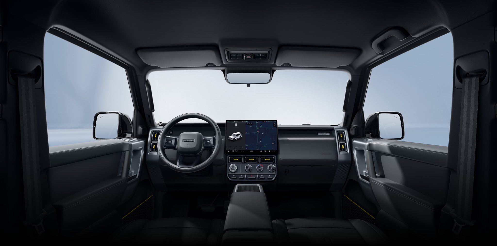 การออกแบบและพื้นที่โดยสาร (Design & Interior): โดดเด่นด้วยดีไซน์ Boxy ทรงกล่องสุดเท่ ไฟหน้าทรงกลม LED ให้กลิ่นอายรถลุยยุคคลาสสิก ภายในห้องโดยสารออกแบบสไตล์ Minimalist Tech ลดปุ่มกดและเน้นการสั่งงานผ่านหน้าจอกลางแบบสัมผัสความละเอียดสูงระดับ 2.5K เบาะนั่ง 5 ที่นั่งกว้างขวาง วัสดุตกแต่งเป็นมิตรกับสิ่งแวดล้อม